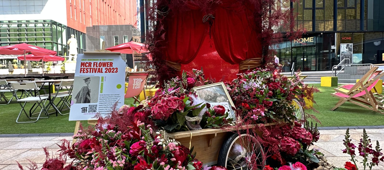 Tony Wilson Place located at First Street, will host five individual displays that will each tell a story of the famous Mancunians (some born, some adopted) that make up the neighbourhood’s place naming strategy. Tony Wilson, Jack Rosenthal, Isabella Banks, Annie Horniman and James Grigor will be celebrated through an abundance of floral design and dressing, incorporating props and imagery to tell the story behind each person’s history and their significant contribution to Manchester’s success through sheer talent, philanthropy and love for their city.
