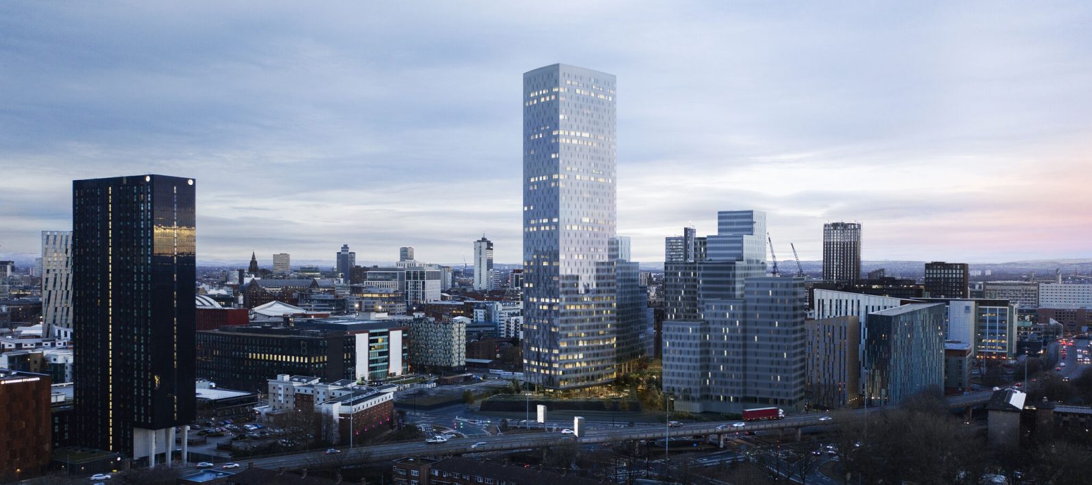 The regeneration project in the heart of Manchester city centre – overlooked by the Mancunian way – will deliver a community-centric development across three new buildings rising to 45 storeys.